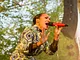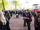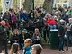 Vagtskiftet ved Marselisborg Slot skærtorsdag kl. 12 tiltrak mange fremmødte, mens politiets indsatsleder undervejs tog sig tid til at besvare spørgsmål fra en nysgerrig dreng.