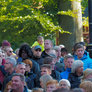 Vagtskiftet ved Marselisborg Slot skærtorsdag kl. 12 tiltrak mange fremmødte, mens politiets indsatsleder undervejs tog sig tid til at besvare spørgsmål fra en nysgerrig dreng.