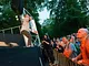 Vagtskiftet ved Marselisborg Slot skærtorsdag kl. 12 tiltrak mange fremmødte, mens politiets indsatsleder undervejs tog sig tid til at besvare spørgsmål fra en nysgerrig dreng.