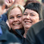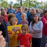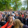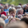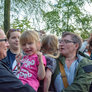 Vagtskiftet ved Marselisborg Slot skærtorsdag kl. 12 tiltrak mange fremmødte, mens politiets indsatsleder undervejs tog sig tid til at besvare spørgsmål fra en nysgerrig dreng.