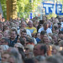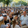 Vagtskiftet ved Marselisborg Slot skærtorsdag kl. 12 tiltrak mange fremmødte, mens politiets indsatsleder undervejs tog sig tid til at besvare spørgsmål fra en nysgerrig dreng.