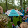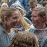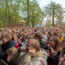 Vagtskiftet ved Marselisborg Slot skærtorsdag kl. 12 tiltrak mange fremmødte, mens politiets indsatsleder undervejs tog sig tid til at besvare spørgsmål fra en nysgerrig dreng.