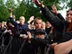 Vagtskiftet ved Marselisborg Slot skærtorsdag kl. 12 tiltrak mange fremmødte, mens politiets indsatsleder undervejs tog sig tid til at besvare spørgsmål fra en nysgerrig dreng.