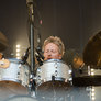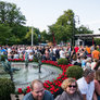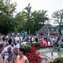 Vagtskiftet ved Marselisborg Slot skærtorsdag kl. 12 tiltrak mange fremmødte, mens politiets indsatsleder undervejs tog sig tid til at besvare spørgsmål fra en nysgerrig dreng.