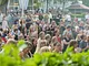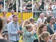 Vagtskiftet ved Marselisborg Slot skærtorsdag kl. 12 tiltrak mange fremmødte, mens politiets indsatsleder undervejs tog sig tid til at besvare spørgsmål fra en nysgerrig dreng.