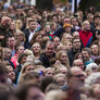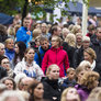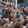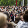 Vagtskiftet ved Marselisborg Slot skærtorsdag kl. 12 tiltrak mange fremmødte, mens politiets indsatsleder undervejs tog sig tid til at besvare spørgsmål fra en nysgerrig dreng.