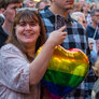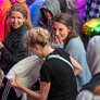En Fed Fredag med en farverig Mads Langer på scenen, og med masser af publikum foran scenen.