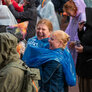 Vagtskiftet ved Marselisborg Slot skærtorsdag kl. 12 tiltrak mange fremmødte, mens politiets indsatsleder undervejs tog sig tid til at besvare spørgsmål fra en nysgerrig dreng.