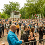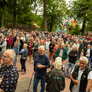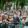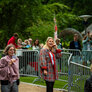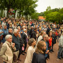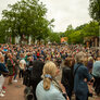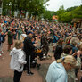 Vagtskiftet ved Marselisborg Slot skærtorsdag kl. 12 tiltrak mange fremmødte, mens politiets indsatsleder undervejs tog sig tid til at besvare spørgsmål fra en nysgerrig dreng.
