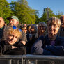 Vagtskiftet ved Marselisborg Slot skærtorsdag kl. 12 tiltrak mange fremmødte, mens politiets indsatsleder undervejs tog sig tid til at besvare spørgsmål fra en nysgerrig dreng.