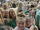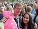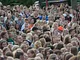 Vagtskiftet ved Marselisborg Slot skærtorsdag kl. 12 tiltrak mange fremmødte, mens politiets indsatsleder undervejs tog sig tid til at besvare spørgsmål fra en nysgerrig dreng.