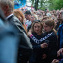 Vagtskiftet ved Marselisborg Slot skærtorsdag kl. 12 tiltrak mange fremmødte, mens politiets indsatsleder undervejs tog sig tid til at besvare spørgsmål fra en nysgerrig dreng.