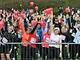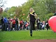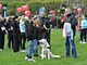 Vagtskiftet ved Marselisborg Slot skærtorsdag kl. 12 tiltrak mange fremmødte, mens politiets indsatsleder undervejs tog sig tid til at besvare spørgsmål fra en nysgerrig dreng.