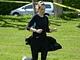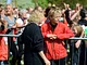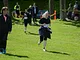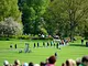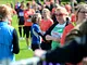 Vagtskiftet ved Marselisborg Slot skærtorsdag kl. 12 tiltrak mange fremmødte, mens politiets indsatsleder undervejs tog sig tid til at besvare spørgsmål fra en nysgerrig dreng.
