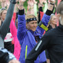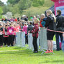 Vagtskiftet ved Marselisborg Slot skærtorsdag kl. 12 tiltrak mange fremmødte, mens politiets indsatsleder undervejs tog sig tid til at besvare spørgsmål fra en nysgerrig dreng.