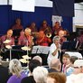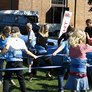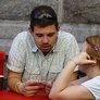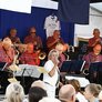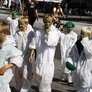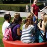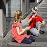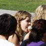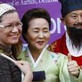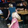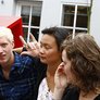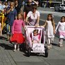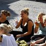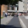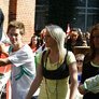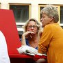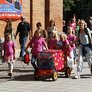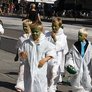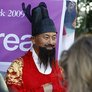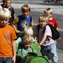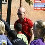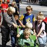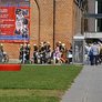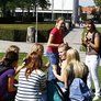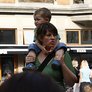 Vagtskiftet ved Marselisborg Slot skærtorsdag kl. 12 tiltrak mange fremmødte, mens politiets indsatsleder undervejs tog sig tid til at besvare spørgsmål fra en nysgerrig dreng.