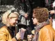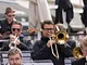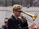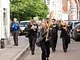 Vagtskiftet ved Marselisborg Slot skærtorsdag kl. 12 tiltrak mange fremmødte, mens politiets indsatsleder undervejs tog sig tid til at besvare spørgsmål fra en nysgerrig dreng.