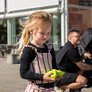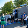 Vagtskiftet ved Marselisborg Slot skærtorsdag kl. 12 tiltrak mange fremmødte, mens politiets indsatsleder undervejs tog sig tid til at besvare spørgsmål fra en nysgerrig dreng.