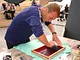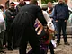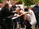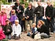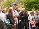 Vagtskiftet ved Marselisborg Slot skærtorsdag kl. 12 tiltrak mange fremmødte, mens politiets indsatsleder undervejs tog sig tid til at besvare spørgsmål fra en nysgerrig dreng.