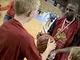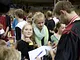 Vagtskiftet ved Marselisborg Slot skærtorsdag kl. 12 tiltrak mange fremmødte, mens politiets indsatsleder undervejs tog sig tid til at besvare spørgsmål fra en nysgerrig dreng.