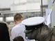 Vagtskiftet ved Marselisborg Slot skærtorsdag kl. 12 tiltrak mange fremmødte, mens politiets indsatsleder undervejs tog sig tid til at besvare spørgsmål fra en nysgerrig dreng.