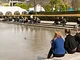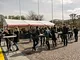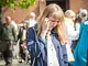 Vagtskiftet ved Marselisborg Slot skærtorsdag kl. 12 tiltrak mange fremmødte, mens politiets indsatsleder undervejs tog sig tid til at besvare spørgsmål fra en nysgerrig dreng.