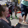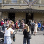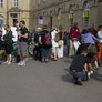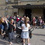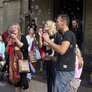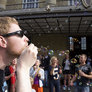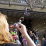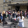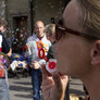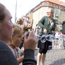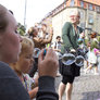 Vagtskiftet ved Marselisborg Slot skærtorsdag kl. 12 tiltrak mange fremmødte, mens politiets indsatsleder undervejs tog sig tid til at besvare spørgsmål fra en nysgerrig dreng.