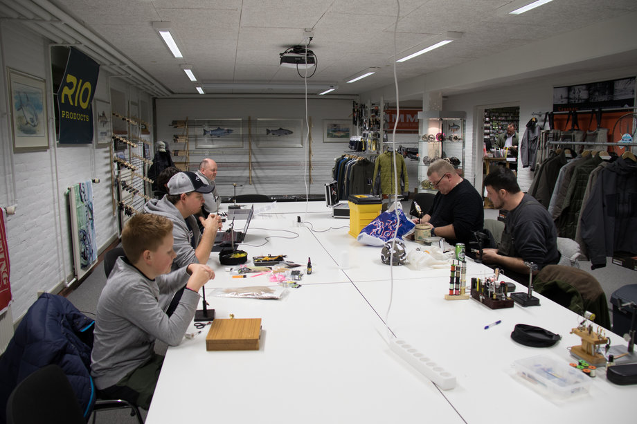 Inkarnerede lystfiskere deltog i fluebindingskursus i Viby hos Fluebinding.nu.