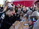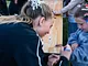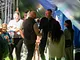 Vagtskiftet ved Marselisborg Slot skærtorsdag kl. 12 tiltrak mange fremmødte, mens politiets indsatsleder undervejs tog sig tid til at besvare spørgsmål fra en nysgerrig dreng.