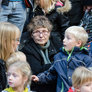 Vagtskiftet ved Marselisborg Slot skærtorsdag kl. 12 tiltrak mange fremmødte, mens politiets indsatsleder undervejs tog sig tid til at besvare spørgsmål fra en nysgerrig dreng.