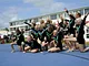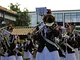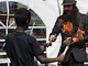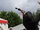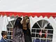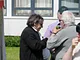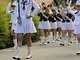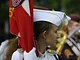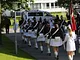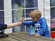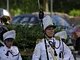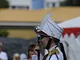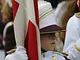 Vagtskiftet ved Marselisborg Slot skærtorsdag kl. 12 tiltrak mange fremmødte, mens politiets indsatsleder undervejs tog sig tid til at besvare spørgsmål fra en nysgerrig dreng.