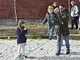 Vagtskiftet ved Marselisborg Slot skærtorsdag kl. 12 tiltrak mange fremmødte, mens politiets indsatsleder undervejs tog sig tid til at besvare spørgsmål fra en nysgerrig dreng.