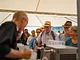 Vagtskiftet ved Marselisborg Slot skærtorsdag kl. 12 tiltrak mange fremmødte, mens politiets indsatsleder undervejs tog sig tid til at besvare spørgsmål fra en nysgerrig dreng.