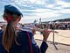 Vagtskiftet ved Marselisborg Slot skærtorsdag kl. 12 tiltrak mange fremmødte, mens politiets indsatsleder undervejs tog sig tid til at besvare spørgsmål fra en nysgerrig dreng.