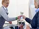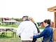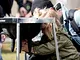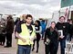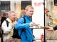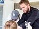 Vagtskiftet ved Marselisborg Slot skærtorsdag kl. 12 tiltrak mange fremmødte, mens politiets indsatsleder undervejs tog sig tid til at besvare spørgsmål fra en nysgerrig dreng.