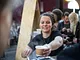 Vagtskiftet ved Marselisborg Slot skærtorsdag kl. 12 tiltrak mange fremmødte, mens politiets indsatsleder undervejs tog sig tid til at besvare spørgsmål fra en nysgerrig dreng.