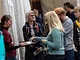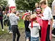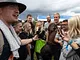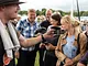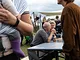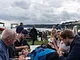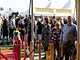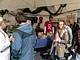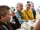 Vagtskiftet ved Marselisborg Slot skærtorsdag kl. 12 tiltrak mange fremmødte, mens politiets indsatsleder undervejs tog sig tid til at besvare spørgsmål fra en nysgerrig dreng.