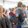 Vagtskiftet ved Marselisborg Slot skærtorsdag kl. 12 tiltrak mange fremmødte, mens politiets indsatsleder undervejs tog sig tid til at besvare spørgsmål fra en nysgerrig dreng.