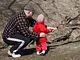 Vagtskiftet ved Marselisborg Slot skærtorsdag kl. 12 tiltrak mange fremmødte, mens politiets indsatsleder undervejs tog sig tid til at besvare spørgsmål fra en nysgerrig dreng.