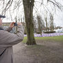 Vagtskiftet ved Marselisborg Slot skærtorsdag kl. 12 tiltrak mange fremmødte, mens politiets indsatsleder undervejs tog sig tid til at besvare spørgsmål fra en nysgerrig dreng.