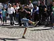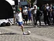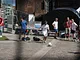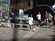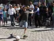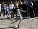 Vagtskiftet ved Marselisborg Slot skærtorsdag kl. 12 tiltrak mange fremmødte, mens politiets indsatsleder undervejs tog sig tid til at besvare spørgsmål fra en nysgerrig dreng.
