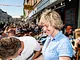 Vagtskiftet ved Marselisborg Slot skærtorsdag kl. 12 tiltrak mange fremmødte, mens politiets indsatsleder undervejs tog sig tid til at besvare spørgsmål fra en nysgerrig dreng.