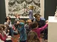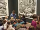 Vagtskiftet ved Marselisborg Slot skærtorsdag kl. 12 tiltrak mange fremmødte, mens politiets indsatsleder undervejs tog sig tid til at besvare spørgsmål fra en nysgerrig dreng.