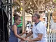 Vagtskiftet ved Marselisborg Slot skærtorsdag kl. 12 tiltrak mange fremmødte, mens politiets indsatsleder undervejs tog sig tid til at besvare spørgsmål fra en nysgerrig dreng.