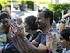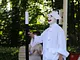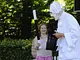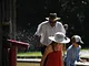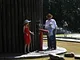 Vagtskiftet ved Marselisborg Slot skærtorsdag kl. 12 tiltrak mange fremmødte, mens politiets indsatsleder undervejs tog sig tid til at besvare spørgsmål fra en nysgerrig dreng.