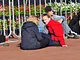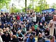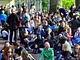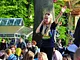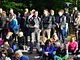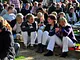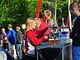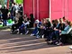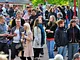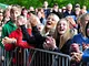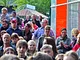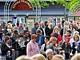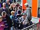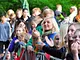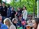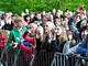 Vagtskiftet ved Marselisborg Slot skærtorsdag kl. 12 tiltrak mange fremmødte, mens politiets indsatsleder undervejs tog sig tid til at besvare spørgsmål fra en nysgerrig dreng.