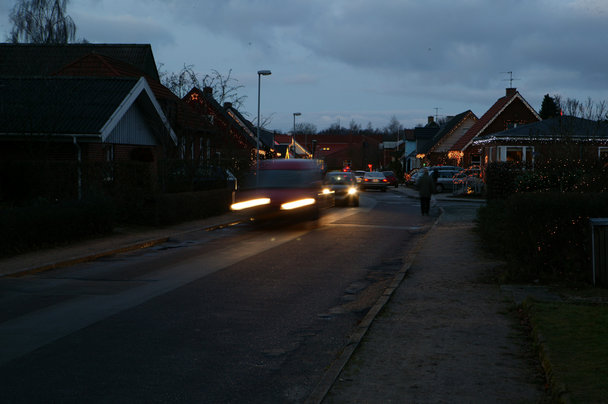 Masser af mennesker var ude at se på dekorationerne i Fredensgade i Hinnerup her til aften. Der var Gløgg og æbleskiver, barnevogne, biler og juleglæde, mens de juledekorerede huse blev studeret, og der blev snakket