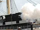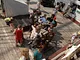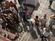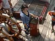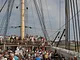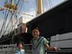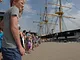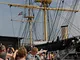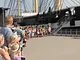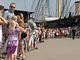 Vagtskiftet ved Marselisborg Slot skærtorsdag kl. 12 tiltrak mange fremmødte, mens politiets indsatsleder undervejs tog sig tid til at besvare spørgsmål fra en nysgerrig dreng.
