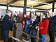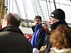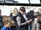 Vagtskiftet ved Marselisborg Slot skærtorsdag kl. 12 tiltrak mange fremmødte, mens politiets indsatsleder undervejs tog sig tid til at besvare spørgsmål fra en nysgerrig dreng.