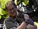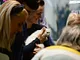 Vagtskiftet ved Marselisborg Slot skærtorsdag kl. 12 tiltrak mange fremmødte, mens politiets indsatsleder undervejs tog sig tid til at besvare spørgsmål fra en nysgerrig dreng.